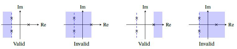 图7.8:作为拉普拉斯变换ROC的有效或无效集合示例。