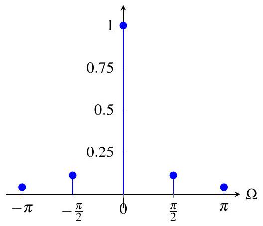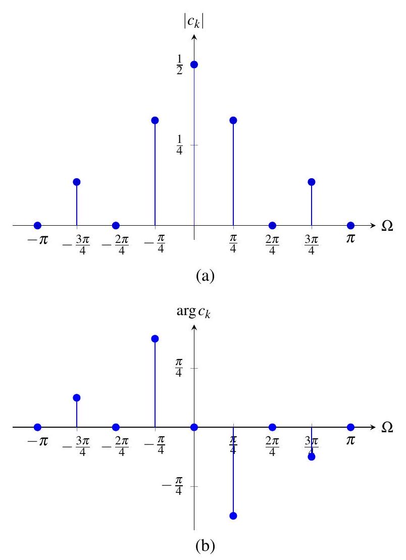 & =\frac{1}{4} e^{j(2 \pi / 8)(-3) n}+\frac{1}{2} e^{j(2 \pi / 8)(-1) n}+1+\frac{1}{2} e^{j(2 \pi / 8)(1) n}+\frac{1}{4} e^{j(2 \pi / 8)(3) n}+\frac{1}{5} e^{j(2 \pi / 8)(4) n}