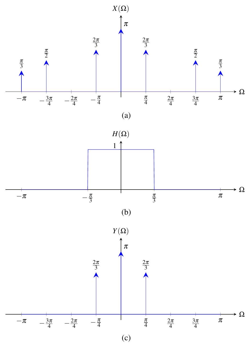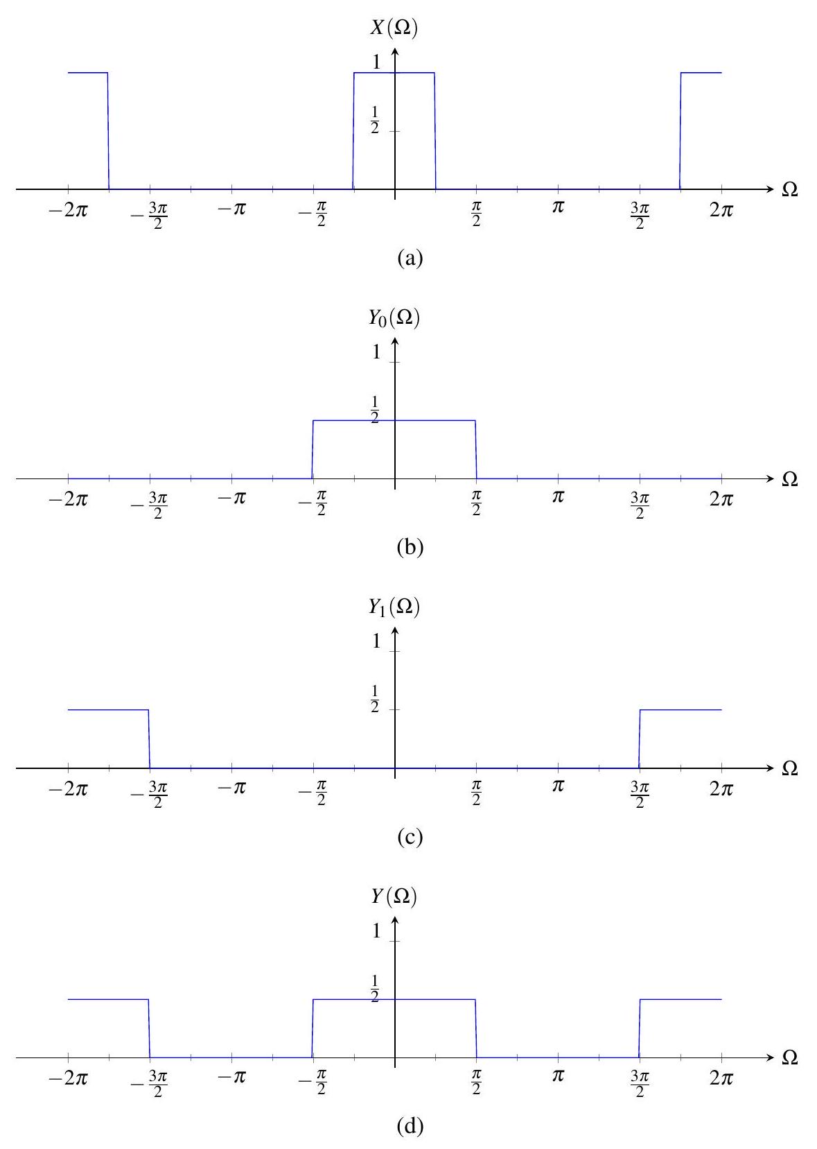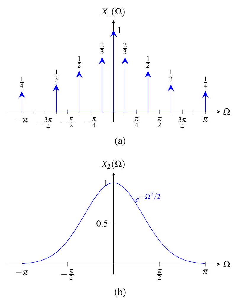 (b) \(X(\Omega)=\frac{1}{2} \Omega\):无效,因为 DTFT 必须 \(2\pi\) 周期;
