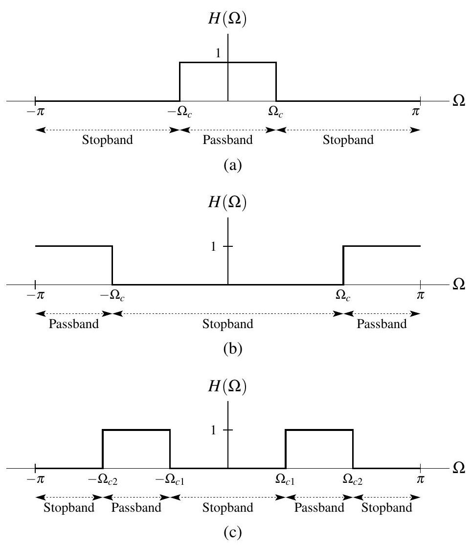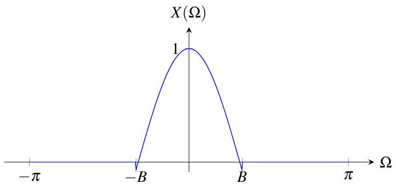 (a) \(X(\Omega)=\begin{cases}1,& |\Omega|\le B \\ 0,& B<|\Omega|\le \pi\end{cases}\),其中 \(B\) 为正实常数;