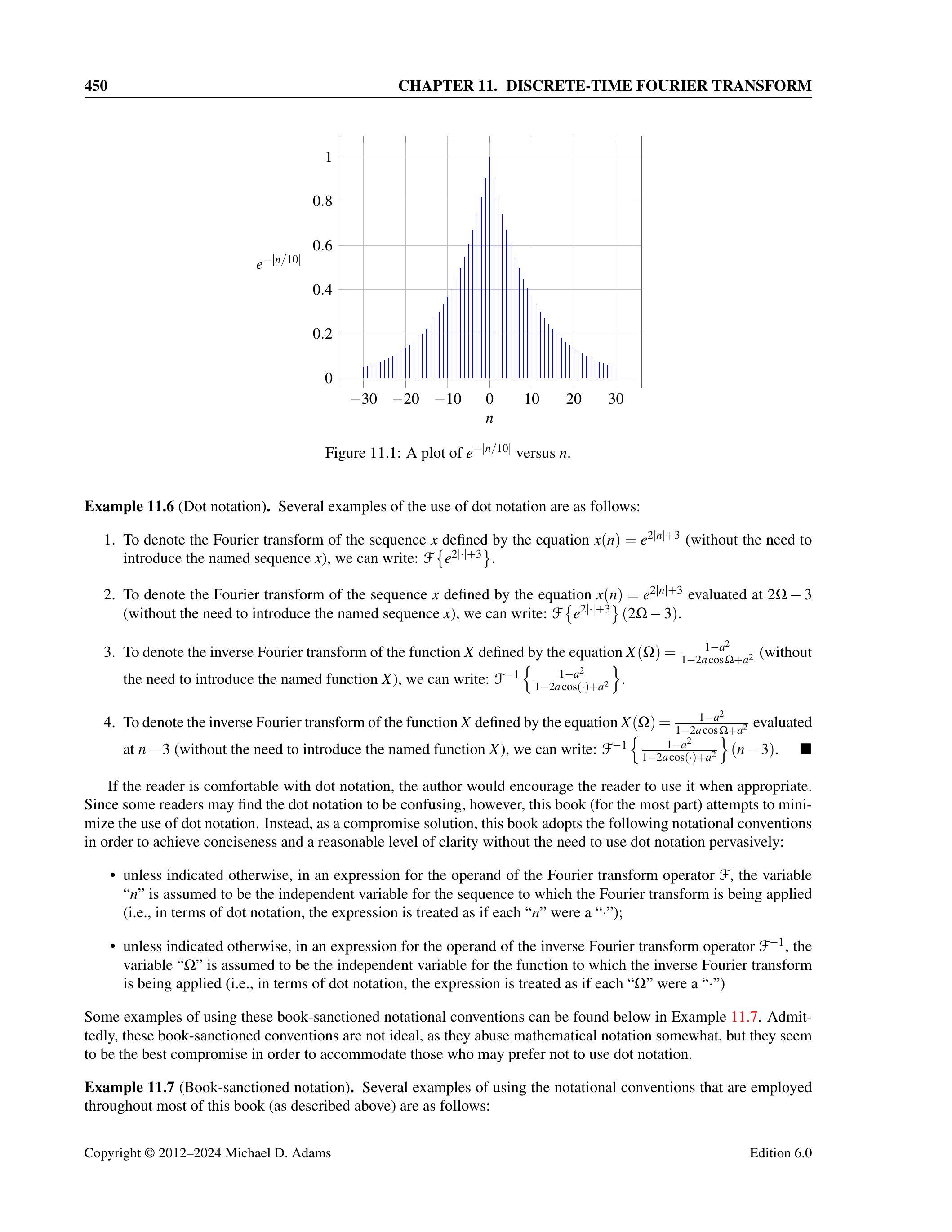 \mathcal{F} x(\Omega)=X(\Omega)=\sum_{n=-\infty}^{\infty} x(n) e^{-j \Omega n} \tag{11.6}