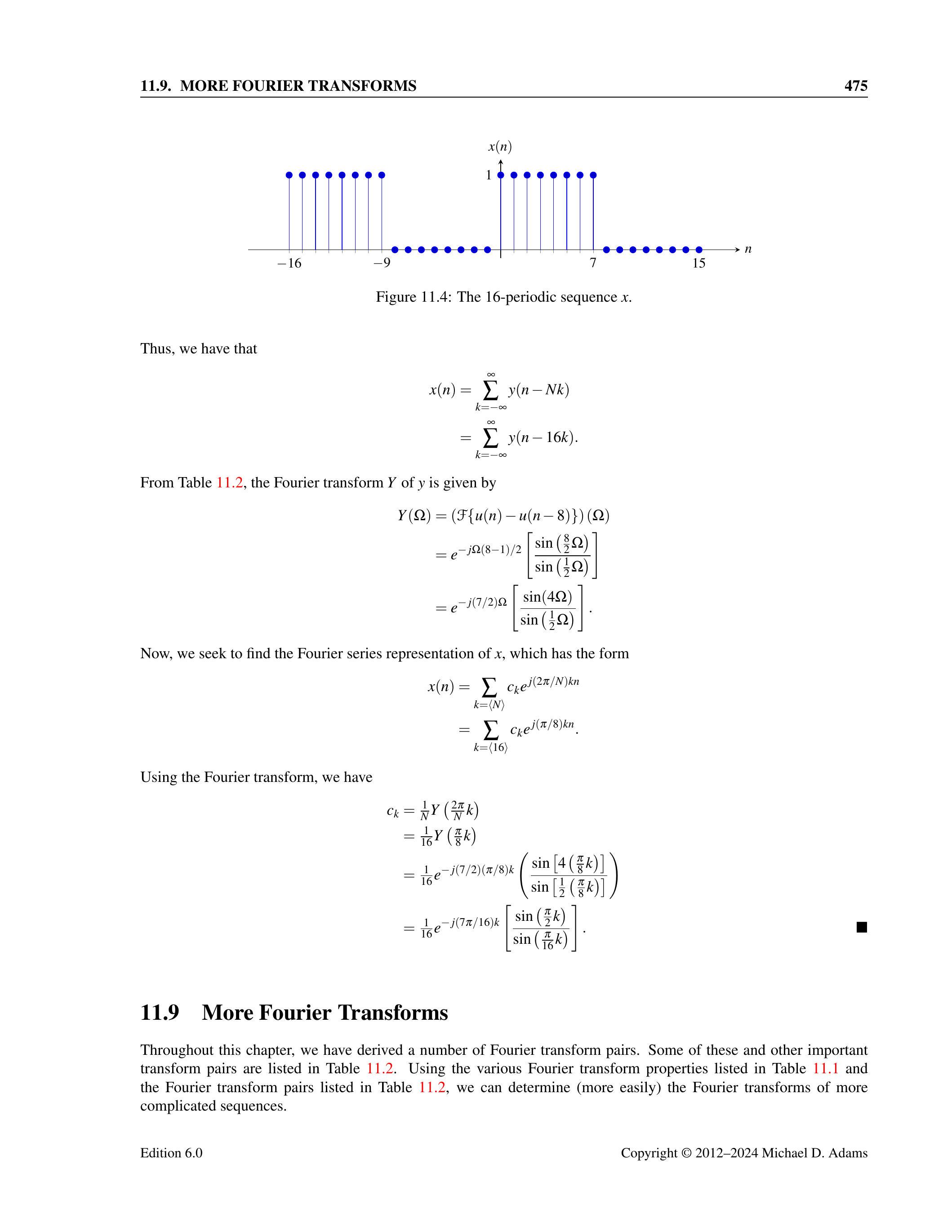 & =\sum_{k=-M}^{M-1} a_{k} e^{j(\pi / M) k n} \tag{11.4}