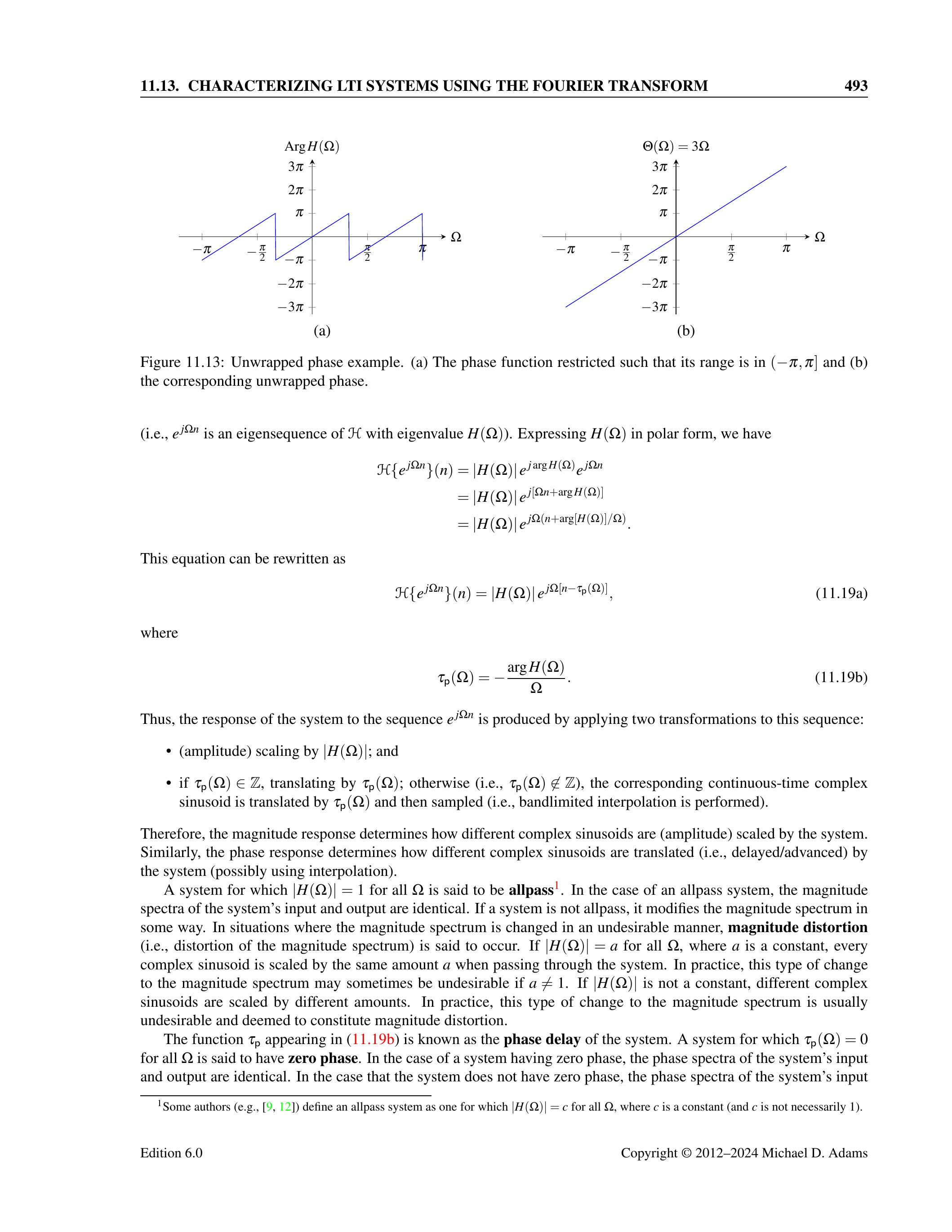 (b) \(X(\Omega)=e^{j(13 / 2) \Omega} \frac{\sin (2 \Omega)}{\sin (\Omega / 2)}\)