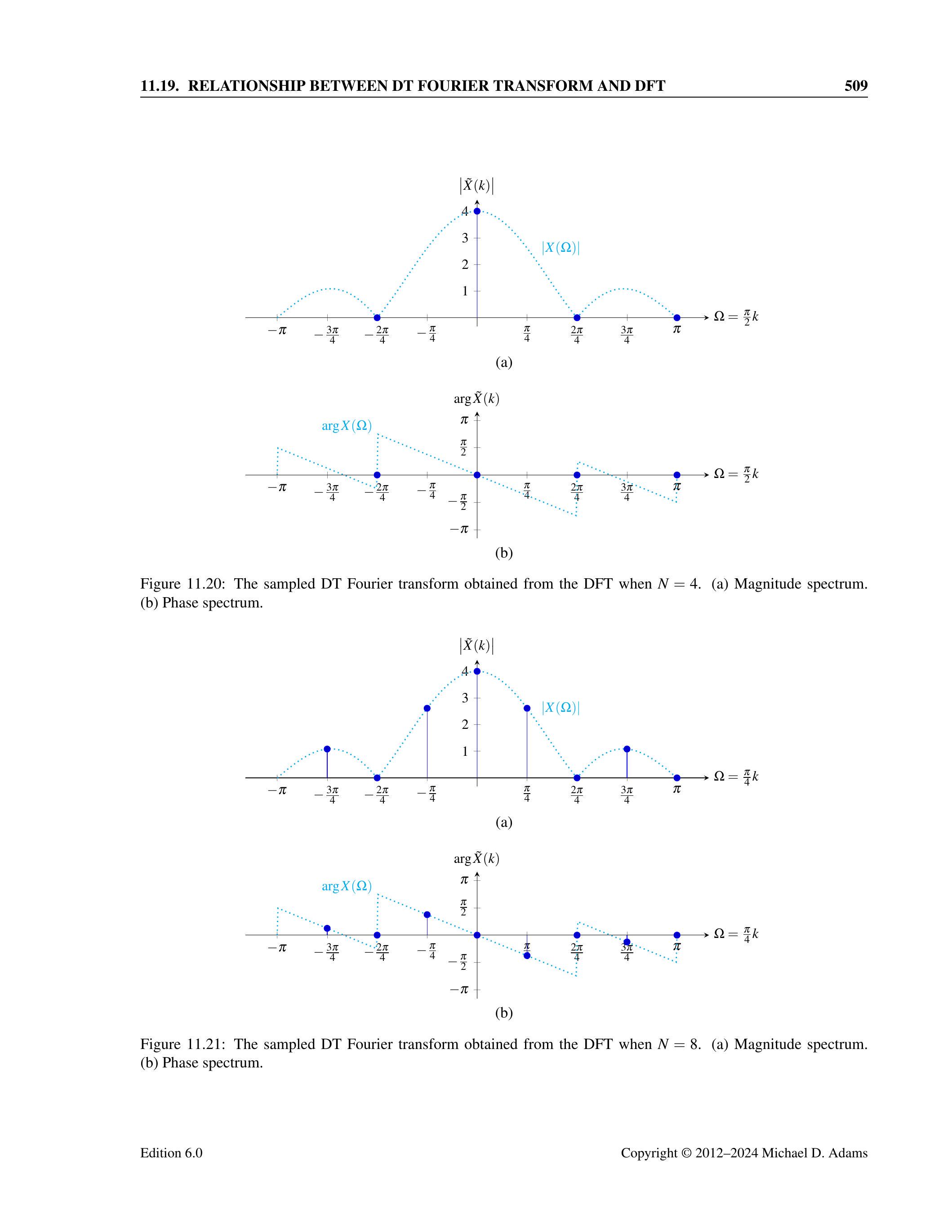 (e) \(X(\Omega)=\frac{\sin(4\Omega)}{\sin(\frac{1}{2}\Omega)}\):有效,周期 \(2\pi\),常见于有限长矩形序列;