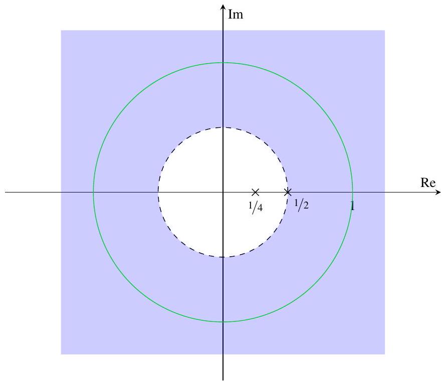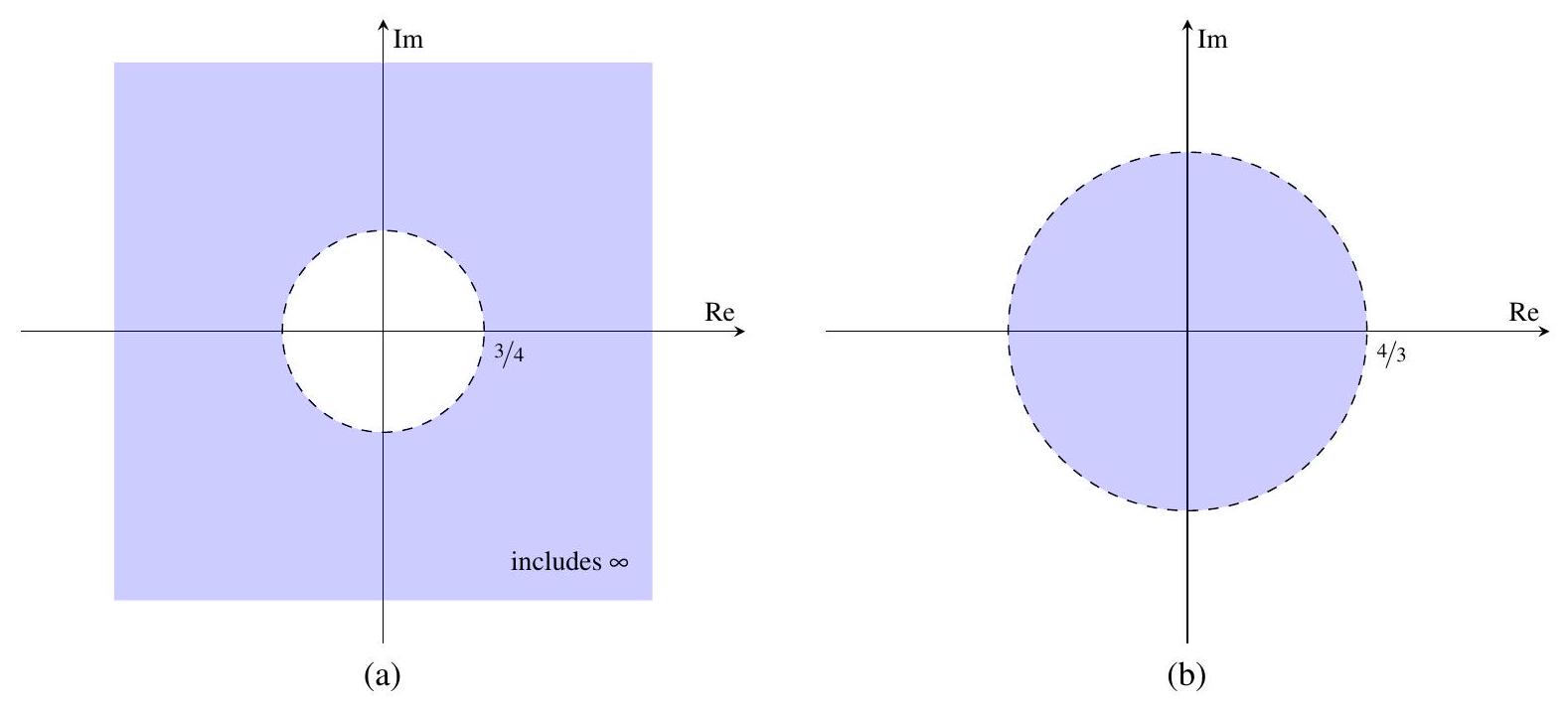例如,假设 \(R\) 是满足 $$ |z|>\frac{3}{4}, $$