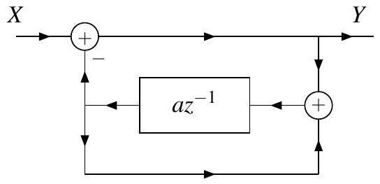 12.13 考虑图示系统,其输入的 z 变换为 \(X\),输出的 z 变换为 \(Y\),每个因果 LTI 子系统都标注了其系统函数,\(a\) 为任意实数常数。
