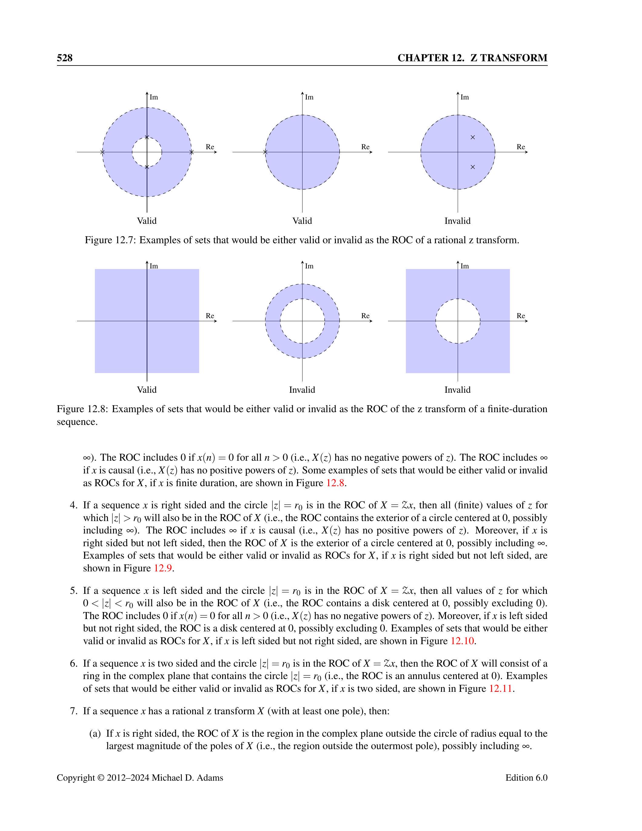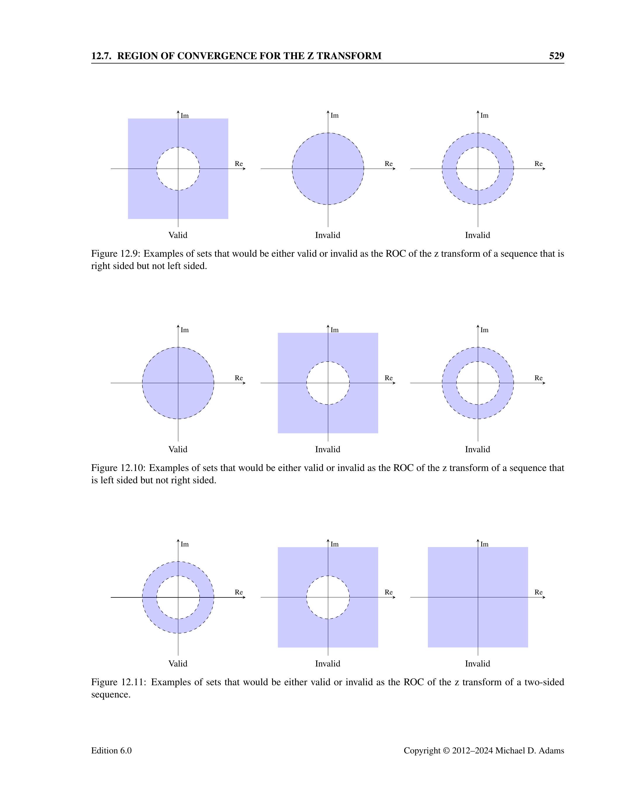 图 12.7 展示了一些可能作为有理 \(z\) 变换ROC的有效或无效集合示例。