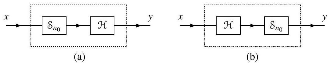 (e) \(\mathcal{H} x(n)=\sum_{k=n-n_{0}}^{n} x(k)\),其中 \(n_{0}\) 是严格正整数。