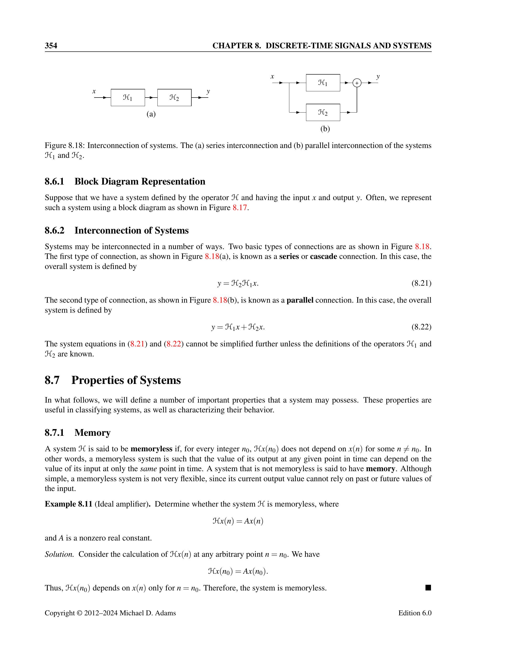 8.14 判断下列每个系统 \(\mathcal{H}\) 是否为无记忆系统(memoryless)。