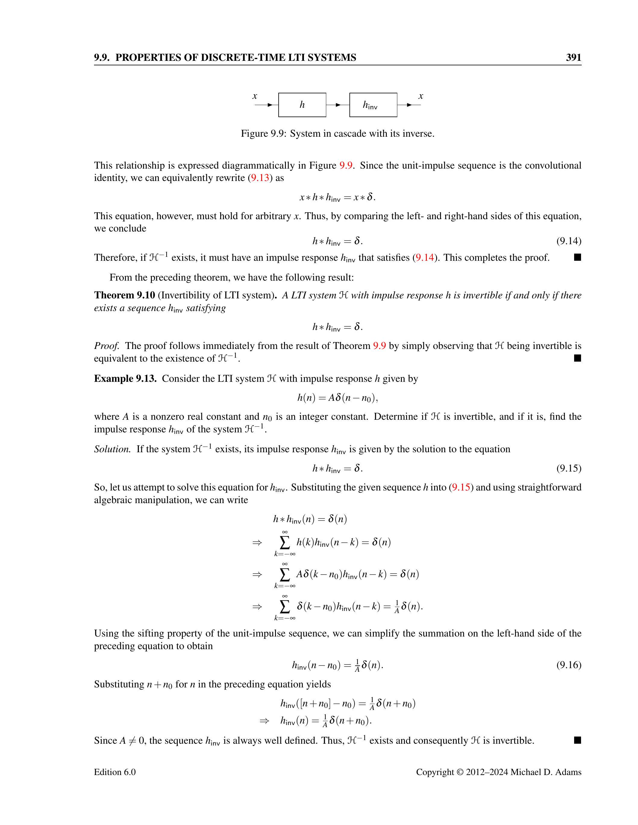 9.3 证明对于任意序列 \(x\),有 \(x * v(n) = x(n - n_0)\),其中 \(v(n) = \delta(n - n_0)\),\(n_0\) 为任意整数常数。
