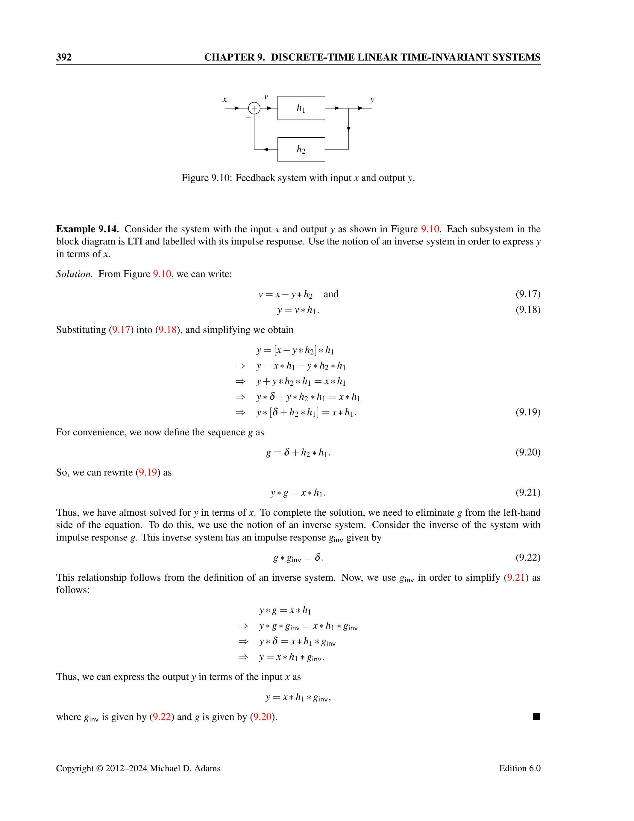 时,求整体系统的冲激响应 \(h\)。