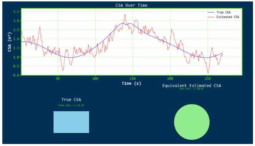 研究团队采用了一种简单方法来估计USV的横截面积,因为其值随时间变化。假设传感器套件能够直接测量横截面积。横截面积的估计通过对最近20次测量值取滑动平均,以平滑当前测量中的噪声。