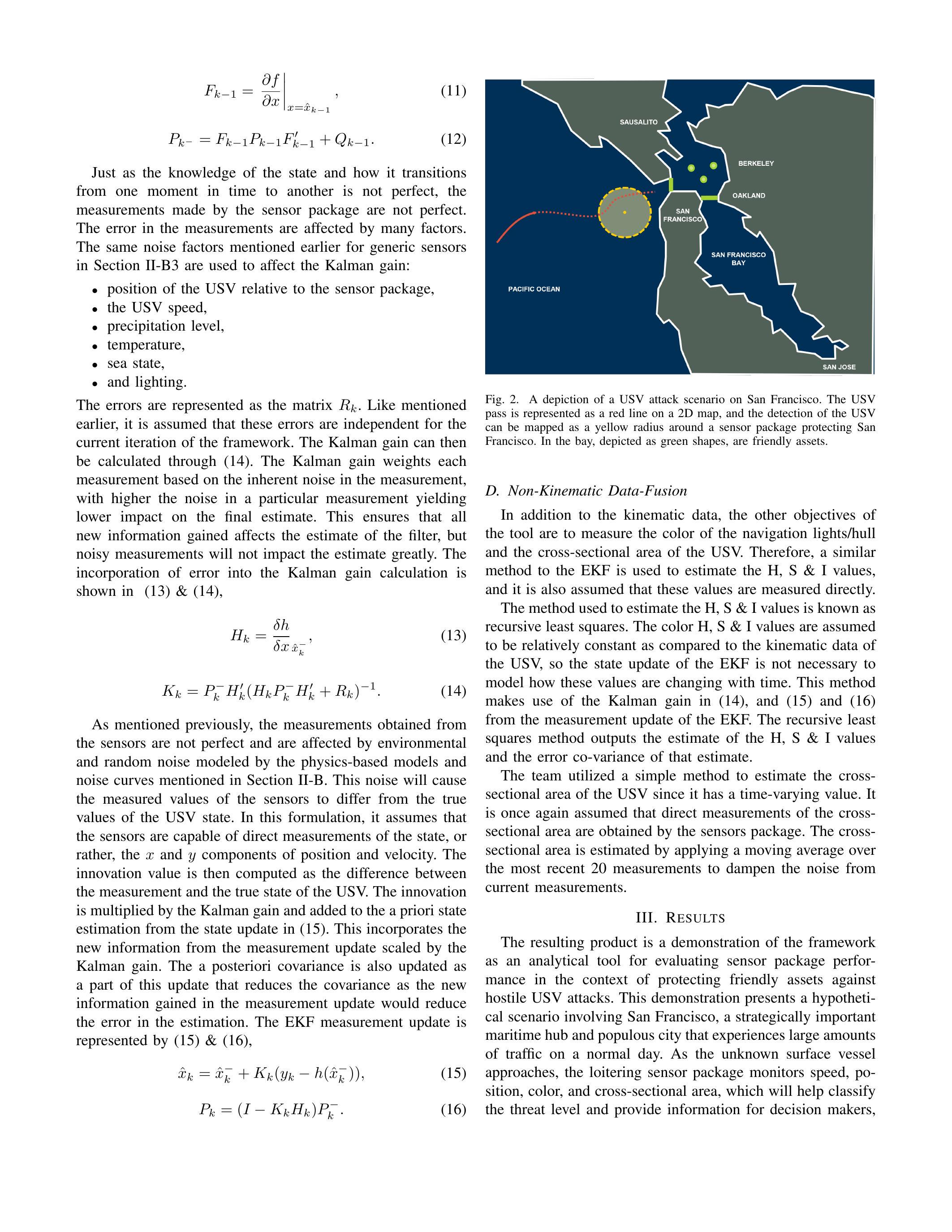 同样,传感器套件测得的观测值也并不完美,其误差受到多种因素影响。与II-B3节中提到的通用传感器噪声因子一致,这些噪声因子在卡尔曼增益的计算中被考虑: