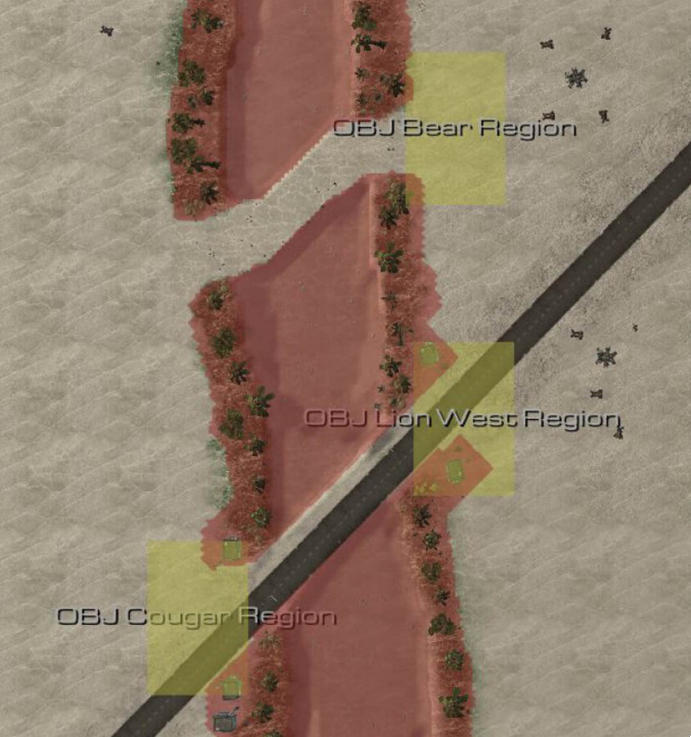 Figure 1. TigerClaw 场景中的作战区域示意图。