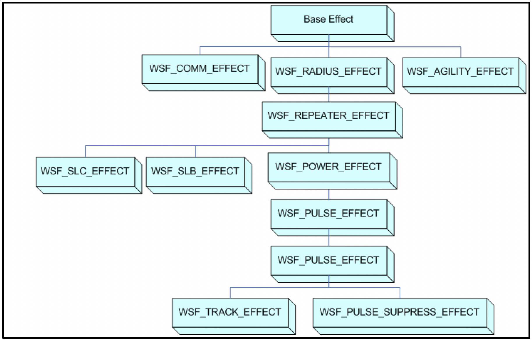 WSF_EXPLICIT_WEAPON- 表示在发射时被模拟为一个独立平台的武器。WSF_IMPLICIT_WEAPON- 表示不需要独立飞行的武器。WSF_RF_JAMMER- 是一个无线电频率干扰器,可用于破坏雷达、电子支援措施(ESM)和无线电通信系统。WSF_LASER_WEAPON- 表示一个具有独立可配置激光流量模型的高能激光(HEL)武器。WSF_CUED_LASER_WEAPON是WSF_LASER_WEAPON的一个实现,由一个单独的光束指导传感器进行提示。