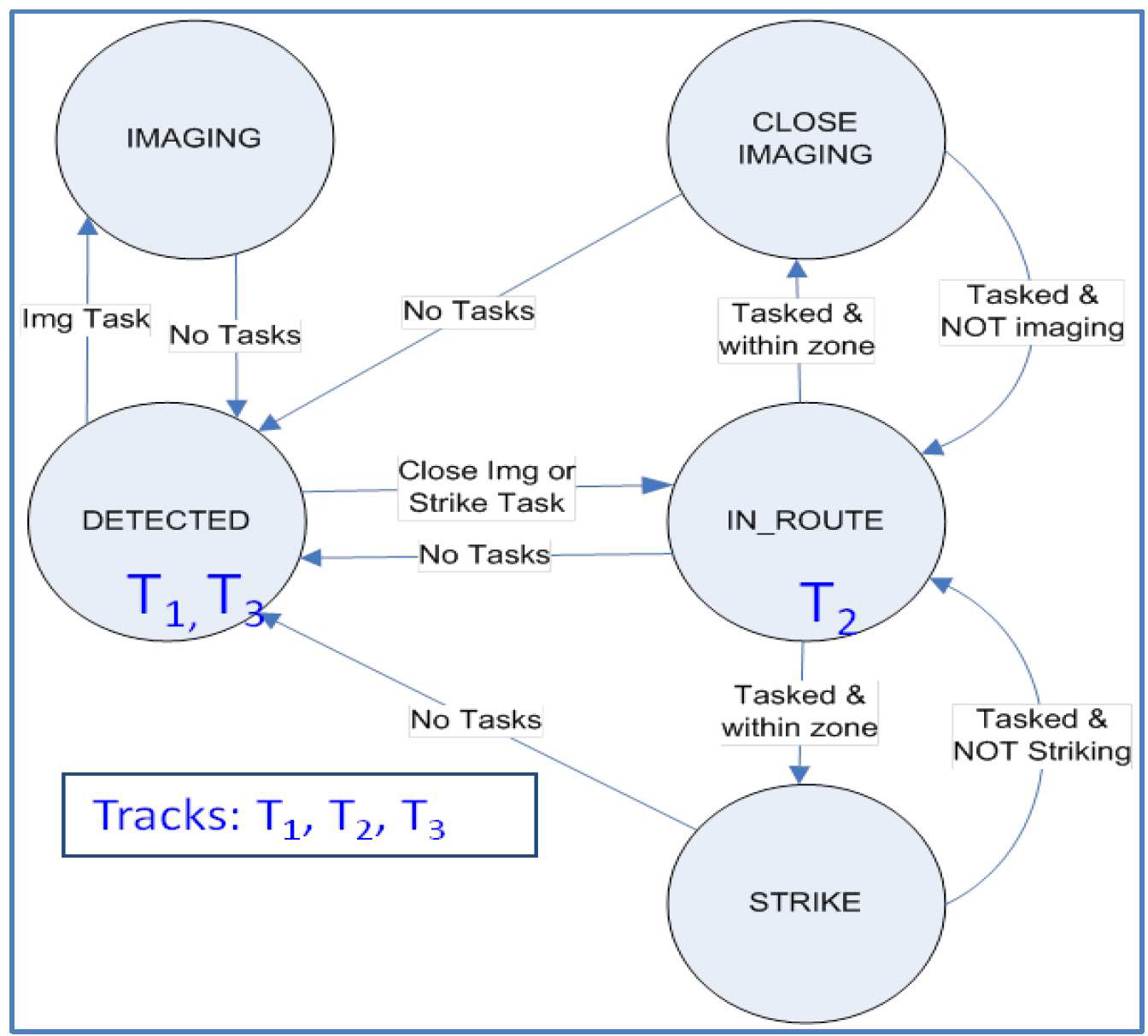AFSIM的任务管理服务提供了发送和接收任务分配、执行任务以及提供处理这些分配的状态信息的功能。任务通常与踪迹相关联;例如,根据踪迹位置发起传感器跟踪请求,在给定的踪迹位置发射武器等。
