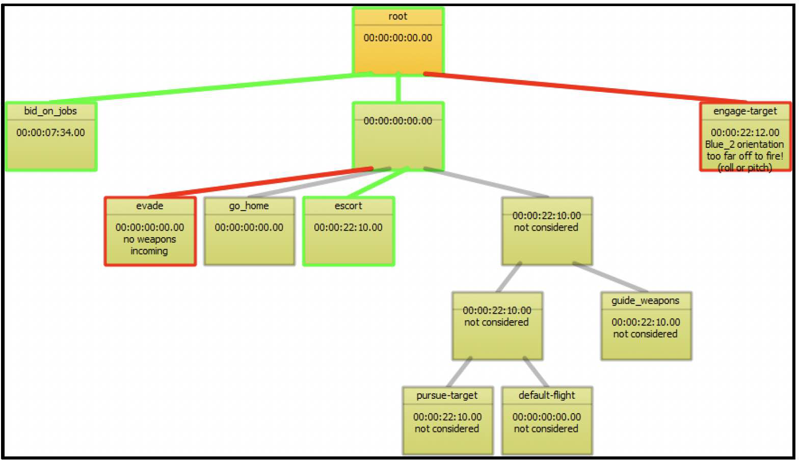 - 飞行员代理的行为树检查回避、解除、紧急情况。