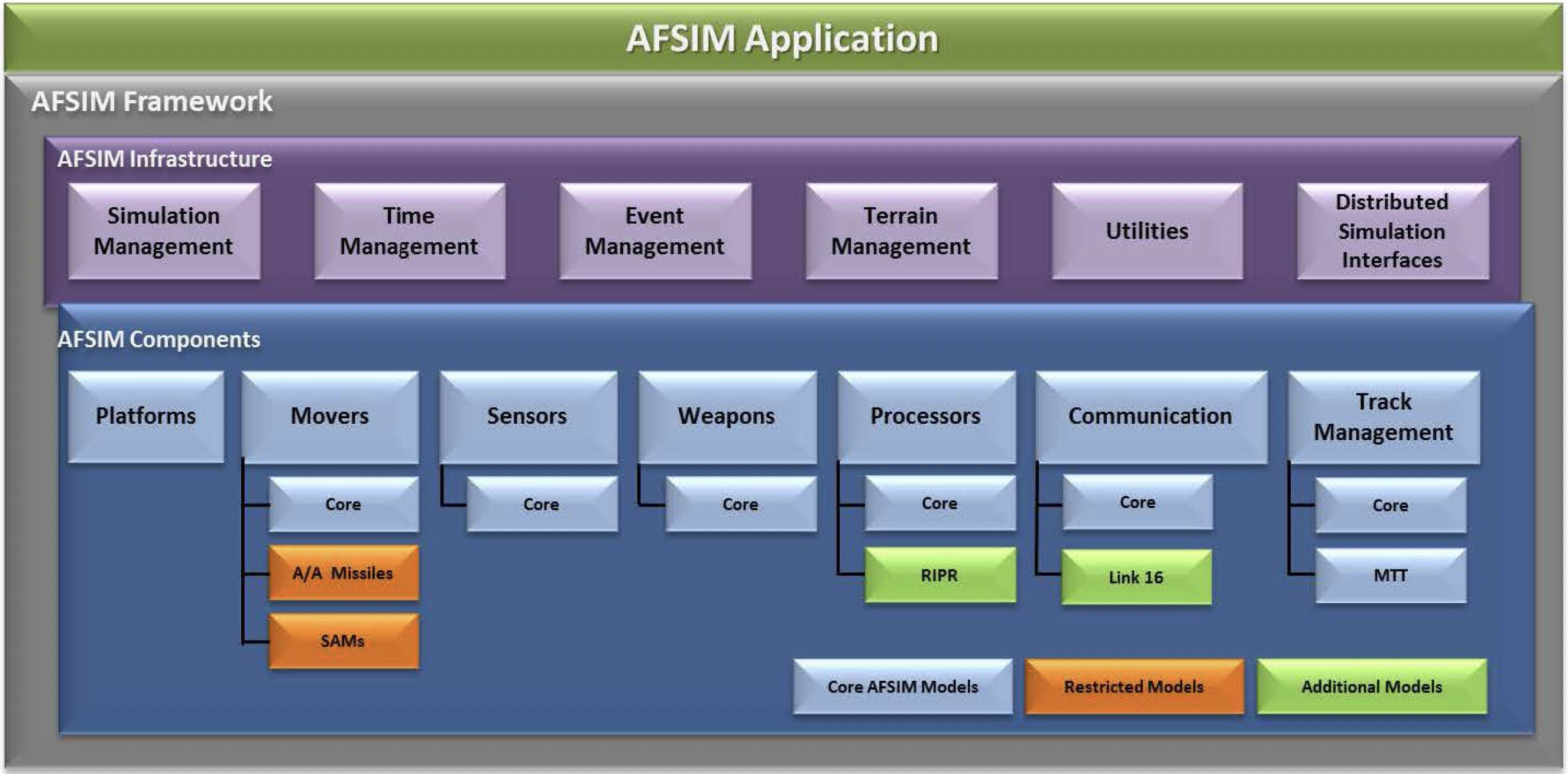 Peter D. Clive, Jeffrey A. Johnson, Michael J. Moss, James M. Zeh, Brian M. Birkmire, and Douglas D. Hodson, "Advanced Framework for Simulation, Integration and Modeling (AFSIM)," in Proceedings from International Conference on Scientific Computing (CSC '15), Las Vegas, July 2015.