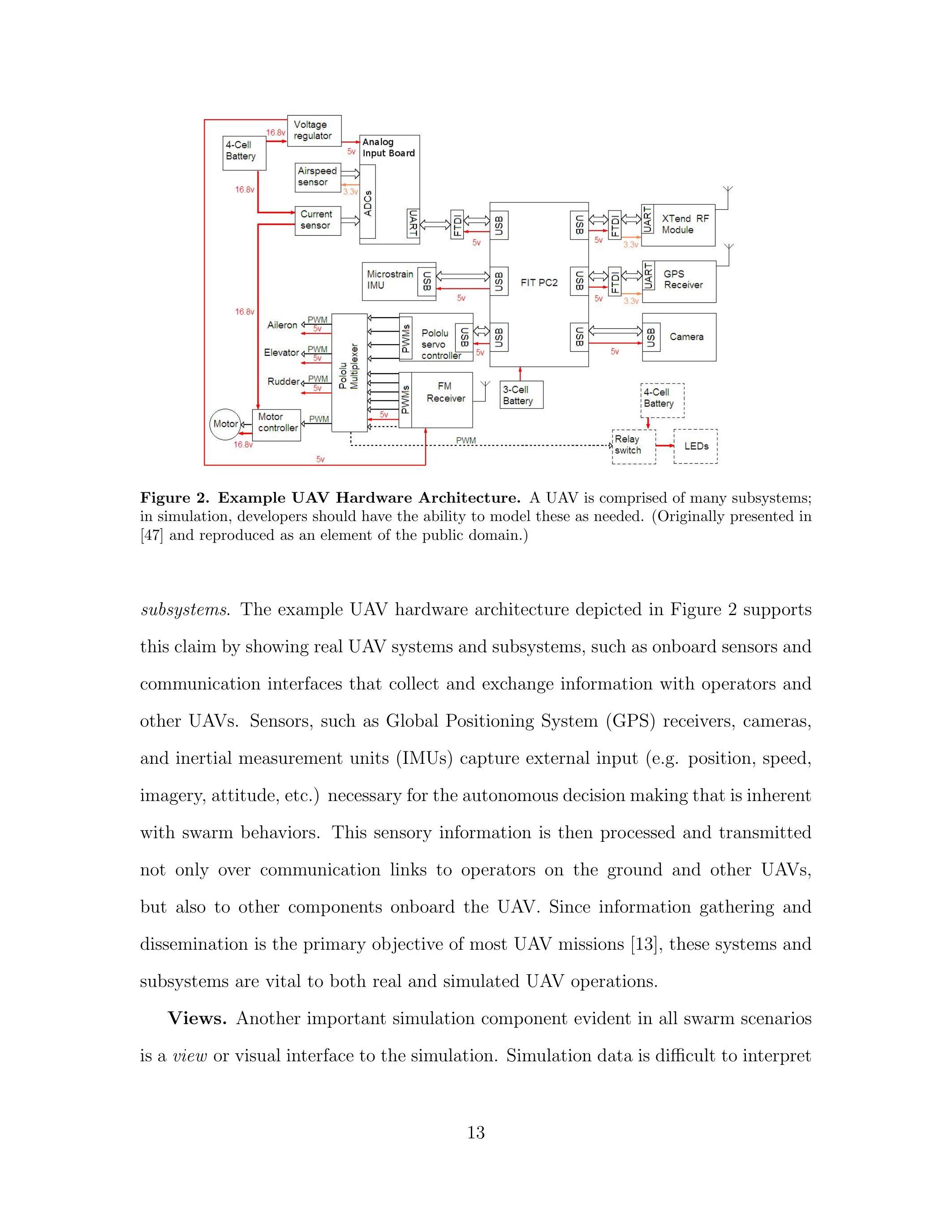 图2. 无人机硬件架构示例。无人机由多个子系统组成;仿真中,开发者应具备根据需求建模这些子系统的能力。(最初见于[47],作为公共领域元素复现)