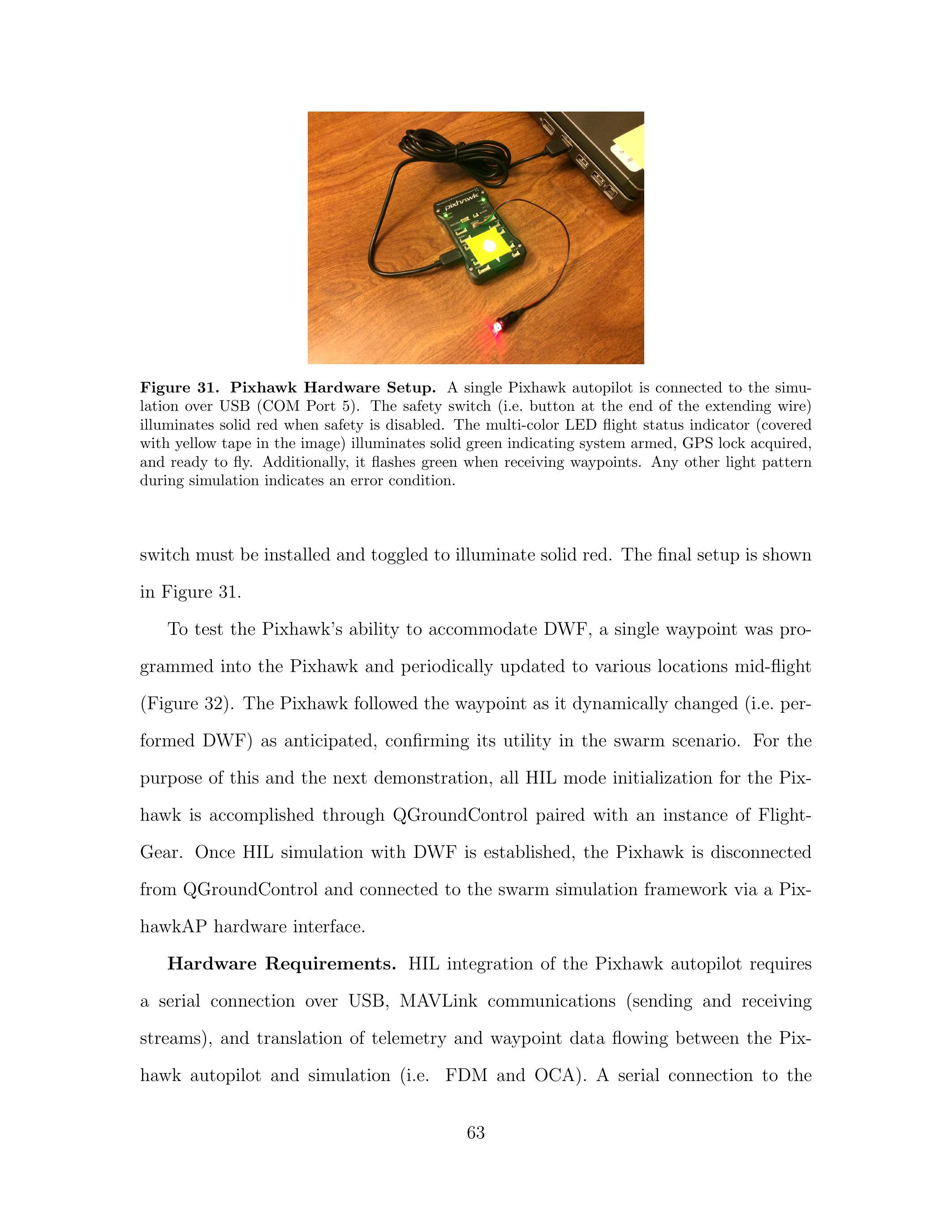 图37. HIL 仿真中的蜂群行为。红色高亮的蜂群无人机由 Pixhawk 自动驾驶仪驱动,其行为与第二次演示中由模拟自动驾驶仪驱动的蜂群无人机相似。