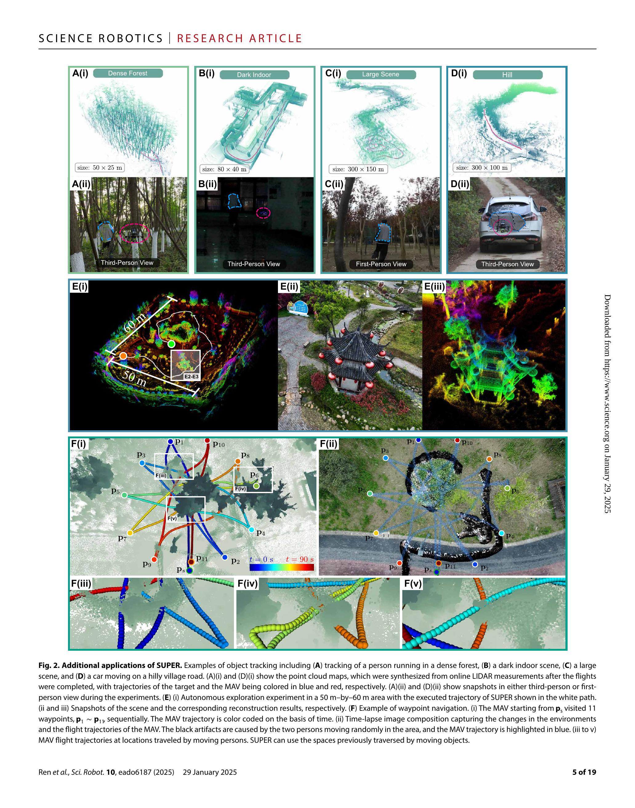 我们展示了SUPER在三个代表性应用中的使用:目标跟踪、未知空间的自主探索以及动态环境中的航点导航(影片S4)。
