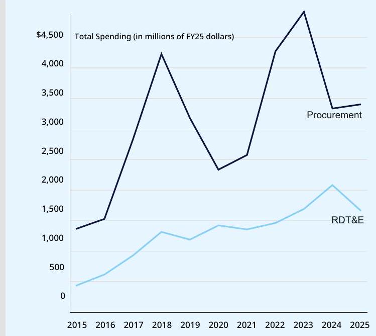 正如本报告对美国国防开支的分析所揭示的,美国国防部(DoD)近十年来一直在投资传统和新兴的反无人机系统(C-UAS)能力。然而,这些努力因规模不足和紧迫性不够而受阻。尽管五角大楼在采购专用反无人机能力方面存在不足,但美军在中东地区的反无人机作战仍然表现突出。